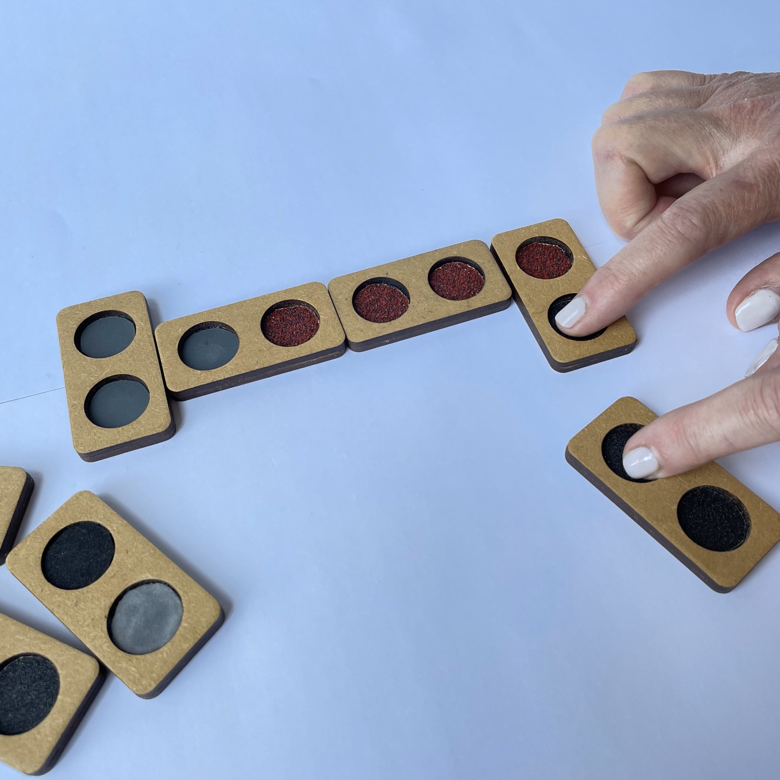 Basado en el tradicional juego del «dominó», en nuestra versión táctil.